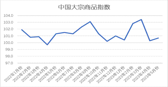 由中國物流與采購聯合會調查、發布的2023年5月份中國大宗商品指數(CBMI)為100.7%,較上月回升0.4個百分點。各分項指數中,供應指數、庫存指數止跌回升,銷售指數則繼續回落。從本月指數的變化情況來看,本月指數止跌回升,主要是受到代表供應端的供應指數和庫存指數止跌回升拉動所致,而銷售指數持續回落,特別是供應指數連續4個月高于銷售指數,顯示需求收縮連續快于供應,供需矛盾有所顯現,當前國內大宗商品市場供大于求的壓力繼續顯現,商品庫存仍在積壓。展望6月份,國內大宗商品市場將處于內外交困的狀況中,整體運行壓力加大,特別是當前國內經濟尚處于弱復蘇狀態,民營經濟仍然偏弱,經濟回升的內生動力依然不足,我國外貿出口也可能面臨較大不確定性。從國外環境來看,當前全球經濟復蘇仍面臨著制造業景氣度下滑的制約,也增加了全球經濟復蘇的不確定性。另外,進入6月份,隨著北方高溫和南方雨季的到來,天氣對于項目施工的影響逐步增大,將對需求產生明顯的影響;制造業訂單類指數繼續小幅回落,反映市場需求收縮的問題仍然突出,市場需求或面臨較大的下滑壓力。若商品產量仍高位釋放,市場供需矛盾將仍然偏大。綜合來看,6月份國內大宗商品市場將會呈現淡季需求不足、供應高位下滑、國內政策提振有限、外部風險依然較高的局面,商品價格整體仍將處于弱勢盤整的階段,部分商品的價格存在一定的下行空間。