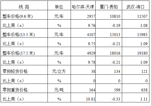 表1 本周部分線路平均價格及環(huán)比情況對比