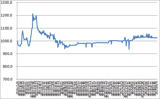 圖1 2016-2023年各周中國公路物流運價指數