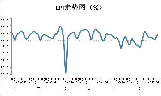 中國物流與采購聯合會總經濟師何輝認為:9月份,受政策顯效、需求逐步恢復和市場預期向好等因素影響,物流業景氣指數較上月明顯回升。各分項指數均有不同程度回升,其中業務總量指數、新訂單指數、庫存周轉次數指數和從業人員指數環比回升超過3個百分點。從區域看,東中西部地區業務需求均衡增長。后期,隨著穩需求、穩增長、提信心等政策持續發力,經濟和物流運行具備企穩回升基礎。