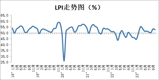 中國物流與采購聯合會發布的2023年10月份中國物流業景氣指數為52.9%,較上月回落0.6個百分點;中國倉儲業指數為50.9%,較上月回落2.6個百分點。