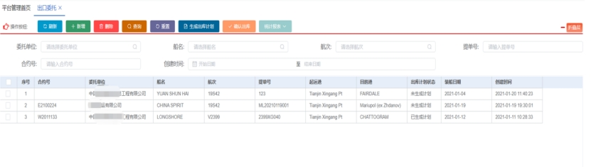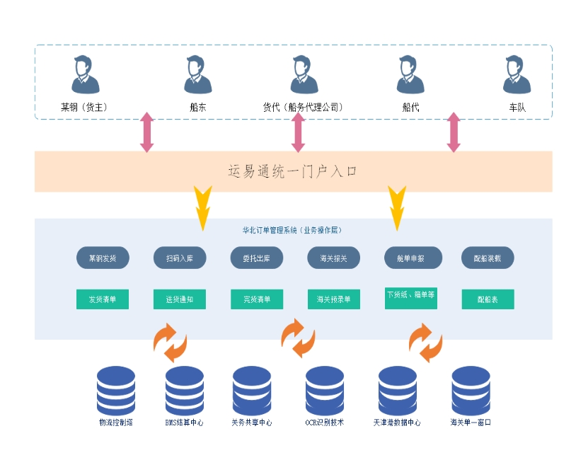 依托統(tǒng)一對外門戶網(wǎng)站,開放船東、船代、貨主、貨代等多種業(yè)務(wù)角色,背靠外運股份物流控制塔、關(guān)務(wù)共享中心、RPA操作流程、OCR文檔識別等多種技術(shù)支撐,同時對接國家單一窗口、天津港數(shù)據(jù)中心,形成一套完善的大宗散雜貨出口訂單管理系統(tǒng)。通過委托、訂艙、報關(guān)、出入庫、港口操作等物流操作環(huán)節(jié),把控各業(yè)務(wù)操作節(jié)點數(shù)據(jù),實現(xiàn)全流程可視化管理。真正建立起低成本、高能效的服務(wù)體系。