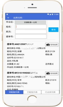 主要包括送貨通知、出/入庫操作單、存庫管理、出/入庫記錄、配船出庫模塊。入庫送貨通知直接對接客戶系統(tǒng),實時進行數(shù)據(jù)對接;倉庫操作現(xiàn)場手持APP掃碼,自動匹配、校驗送貨通知,并與司機面對面進行電子簽章確認;手持終端接收PC端下發(fā)的出庫計劃,進行噴標出庫,根據(jù)提單號,精準定位貨物所在區(qū)域,盲掃配船;利用二維碼技術(shù),實現(xiàn)SKU顆粒度掃碼出庫、精細化管理,實時掌控每一件貨當前狀態(tài);通過自有手持APP系統(tǒng)協(xié)調(diào),改變現(xiàn)有操作模式,掌控一手貨物操作節(jié)點狀態(tài),規(guī)避業(yè)務(wù)風(fēng)險。