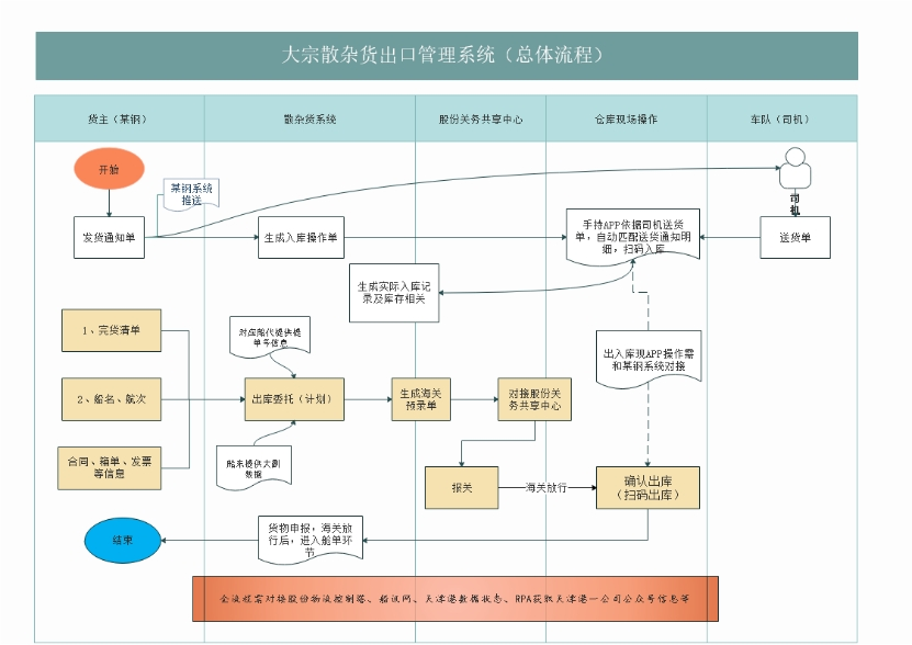 在此背景下,中外運華北公司承接某鋼廠出口港口交接操作服務(wù),服務(wù)內(nèi)容主要包括報關(guān)、遞載、上艙單、貨物出入庫管理、裝船等多個操作環(huán)節(jié),通過不斷討論與探索,華北公司便啟動了以某鋼為場景的大宗散雜貨出口系統(tǒng)建設(shè)。通過規(guī)范和完善整個業(yè)務(wù)操作流程,實現(xiàn)線上一體化管理,達到信息的透明化、管理的規(guī)范化、決策的智能化的目的,有利于企業(yè)不斷提升管理水平和營收能力,為企業(yè)帶來經(jīng)濟效益和社會效益。