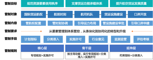 “管制”是市場(chǎng)經(jīng)濟(jì)條件下政府針對(duì)市場(chǎng)機(jī)制的內(nèi)在問(wèn)題(負(fù)外部性)采取的某種干預(yù)、限制或約束的行為,是一種制度安排。民航關(guān)鍵資源的用途管制著眼于理順市場(chǎng)、要素與機(jī)場(chǎng)貨運(yùn)功能定位之間的邏輯關(guān)系,旨在保障、規(guī)范、集約利用民航關(guān)鍵資源,建構(gòu)“功能定位指引+民航關(guān)鍵資源用途管制”的國(guó)家航空貨運(yùn)(物流)發(fā)展新機(jī)制,完善民航政策工具,推動(dòng)我國(guó)航空貨運(yùn)(物流)發(fā)展更有序、更有效和更高質(zhì)量。