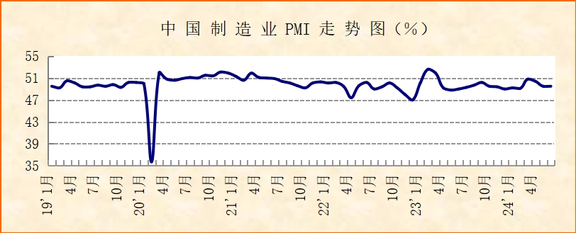 中國(guó)物流與采購(gòu)聯(lián)合會(huì)、國(guó)家統(tǒng)計(jì)局服務(wù)業(yè)調(diào)查中心發(fā)布的2024年6月份中國(guó)制造業(yè)采購(gòu)經(jīng)理指數(shù)(PMI)為49.5%,與上月持平。從分項(xiàng)指數(shù)變化來(lái)看,生產(chǎn)端穩(wěn)中有增,新動(dòng)能加快增長(zhǎng),微觀主體活力有所改善,原料成本壓力短期回落,經(jīng)濟(jì)運(yùn)行整體穩(wěn)定。但市場(chǎng)需求不足問(wèn)題需進(jìn)一步重視。
