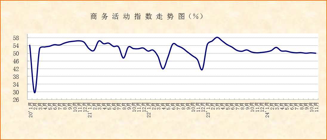 中國物流與采購聯合會、國家統計局服務業調查中心發布的2024年11月份中國非制造業商務活動指數為50%,較上月下降0.2個百分點,連續6個月穩定在50%左右,顯示非制造業經營活動未能延續上月上升勢頭,但指數仍在50%,意味著非制造業經營活動在上月上升基礎上保持平穩運行。細分數據變化顯示,社會融資需求有所提升,基礎建設活動保持穩定,新動能繼續賦能經濟轉型,市場信心持續增強。