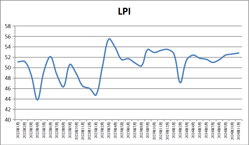 - 2024年11月份中國物流業(yè)景氣指數(shù)為52.8%