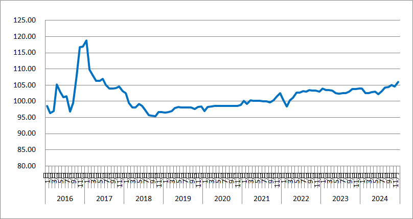 - 2024年12月份中國公路物流運(yùn)價(jià)指數(shù)為105.9點(diǎn)
