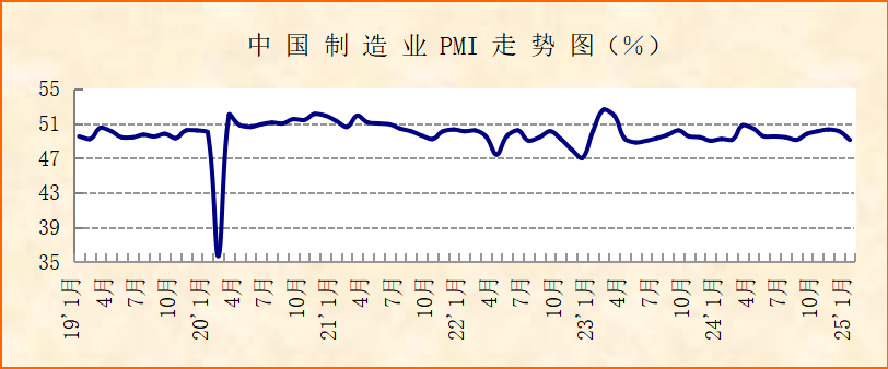 中國物流與采購聯合會、國家統計局服務業調查中心發布的2025年1月份中國制造業采購經理指數(PMI)為49.1%,較上月下降1個百分點,顯示經濟運行短期有所波動。分項指數變化顯示,受季節性因素影響,企業接單有所回落,生產活動短期有所放緩。但市場價格趨穩運行,企業資金壓力有所緩解,制造業穩定運行基礎牢固,企業對后市預期普遍樂觀。預計一季度制造業將穩定向好運行。