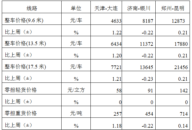 表1 本周部分線路平均價(jià)格及環(huán)比情況對(duì)比
