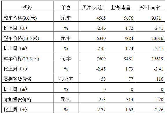 表1 本周部分線路平均價(jià)格及環(huán)比情況對(duì)比