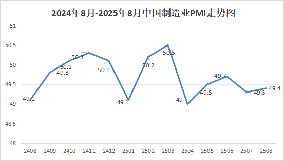 中國物流與采購聯合會、國家統計局服務業調查中心發布的2025年8月份中國制造業采購經理指數(PMI)為49.4%,比上月上升0.1個百分點。