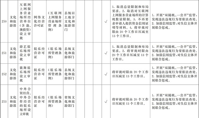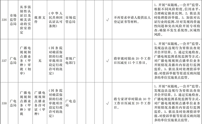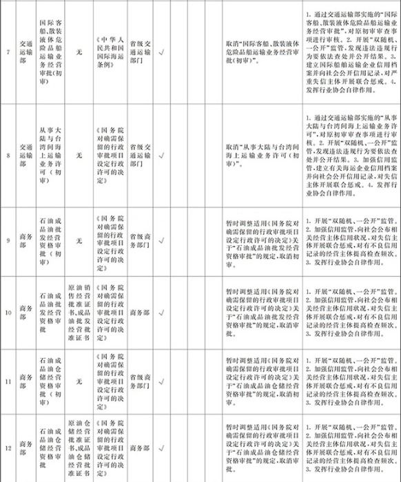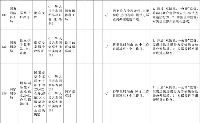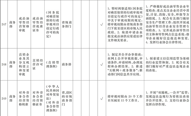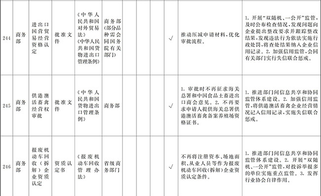 (一)直接取消審批。對設(shè)定必要性已不存在、市場機(jī)制能夠有效調(diào)節(jié)、行業(yè)組織或中介機(jī)構(gòu)能夠有效實(shí)現(xiàn)行業(yè)自律管理、通過事中事后監(jiān)管能夠有效規(guī)范的涉企經(jīng)營許可事項(xiàng),直接取消審批。