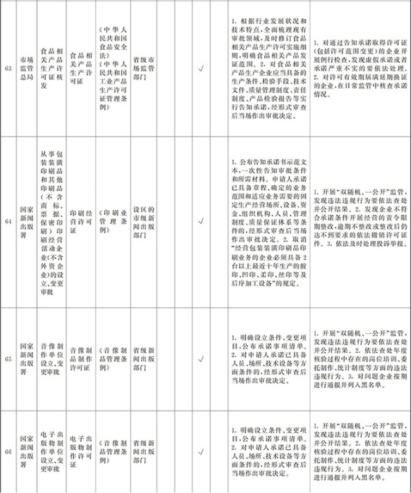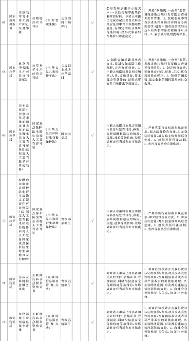 (三)實(shí)行告知承諾。對確需保留的涉企經(jīng)營許可事項(xiàng),企業(yè)就符合經(jīng)營許可條件作出承諾,有關(guān)主管部門通過事中事后監(jiān)管能夠糾正不符合經(jīng)營許可條件行為、有效防范風(fēng)險(xiǎn)的,實(shí)行告知承諾。