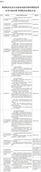 2.國務(wù)院決定在自由貿(mào)易試驗(yàn)區(qū)暫時(shí)調(diào)整適用有關(guān)行政法規(guī)、國務(wù)院決定規(guī)定目錄