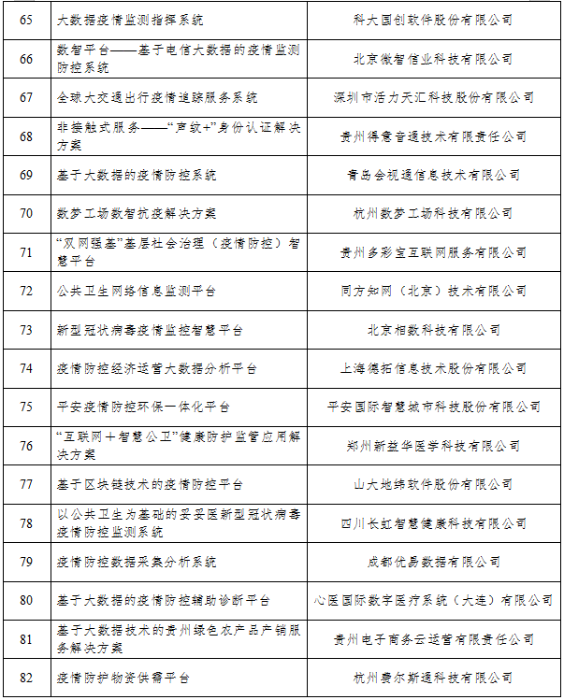 工業和信息化部辦公廳關于公布支撐疫情防控和復工復產復課大數據產品和解決方案的通知