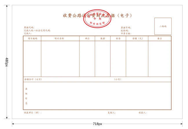 通行費財政電子票據的票據代碼為8位,編碼規則:第1~2位代表通行費財政電子票據監管機構行政區劃編碼,第3~4位代表通行費財政電子票據分類編碼,第5~6位代表通行費財政電子票據種類編碼,第7~8位代表通行費財政電子票據年度編碼。票據號碼為10位,采用順序號,用于反映通行費財政電子票據賦碼順序。通行費財政電子票據票樣見附件2。