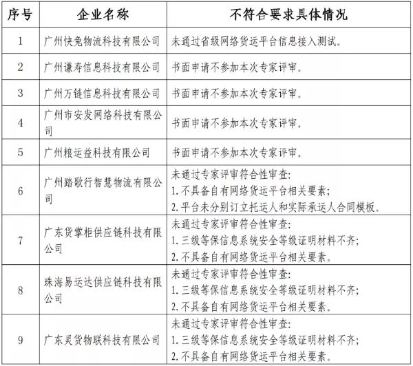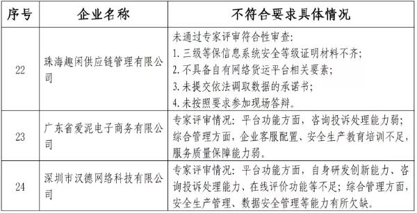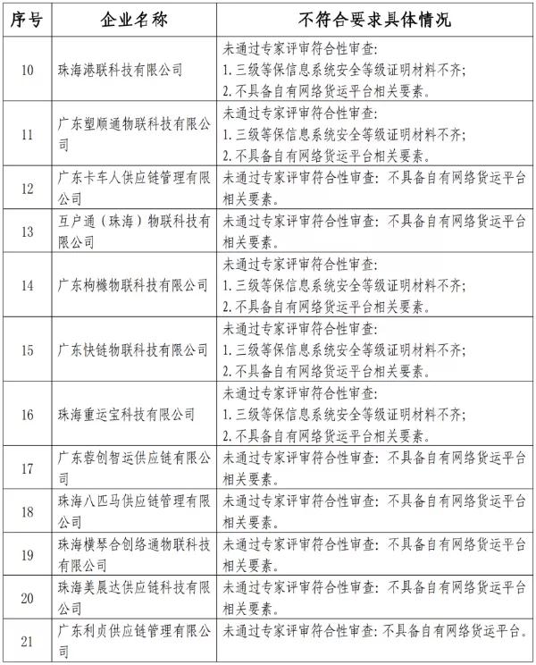 二、廣州快兔物流科技有限公司等24家企業(名單見附件2)平臺因未通過信息接入測試或專家評審,以及主動申請延后審核等原因,暫不符合線上服務能力有關要求。其中:
