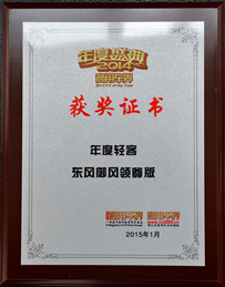 2015年1月11日,商用車領(lǐng)域最大規(guī)模的年度盛會(huì)——“2014商用車界年度盛典”在北京盛大舉行。此次盛典得到了包括中國物流與采購聯(lián)合會(huì)、中國汽車工業(yè)協(xié)會(huì)、中國汽車工程學(xué)會(huì)、中國內(nèi)燃機(jī)工業(yè)協(xié)會(huì)、中國汽車流通協(xié)會(huì)、國家民航局機(jī)關(guān)服務(wù)局等單位的大力支持,來自國際、國內(nèi)主流商用車整車、零配件企業(yè)、主流媒體、集團(tuán)用戶等240多人參加了此次盛會(huì)。年度盛典上,東風(fēng)御風(fēng)榮膺“年度輕客”、“年度純電動(dòng)車型”兩項(xiàng)大獎(jiǎng)。
