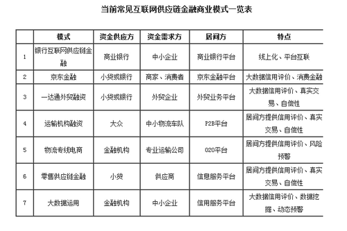 當前常見互聯(lián)網(wǎng)供應鏈金融商業(yè)模式一覽表