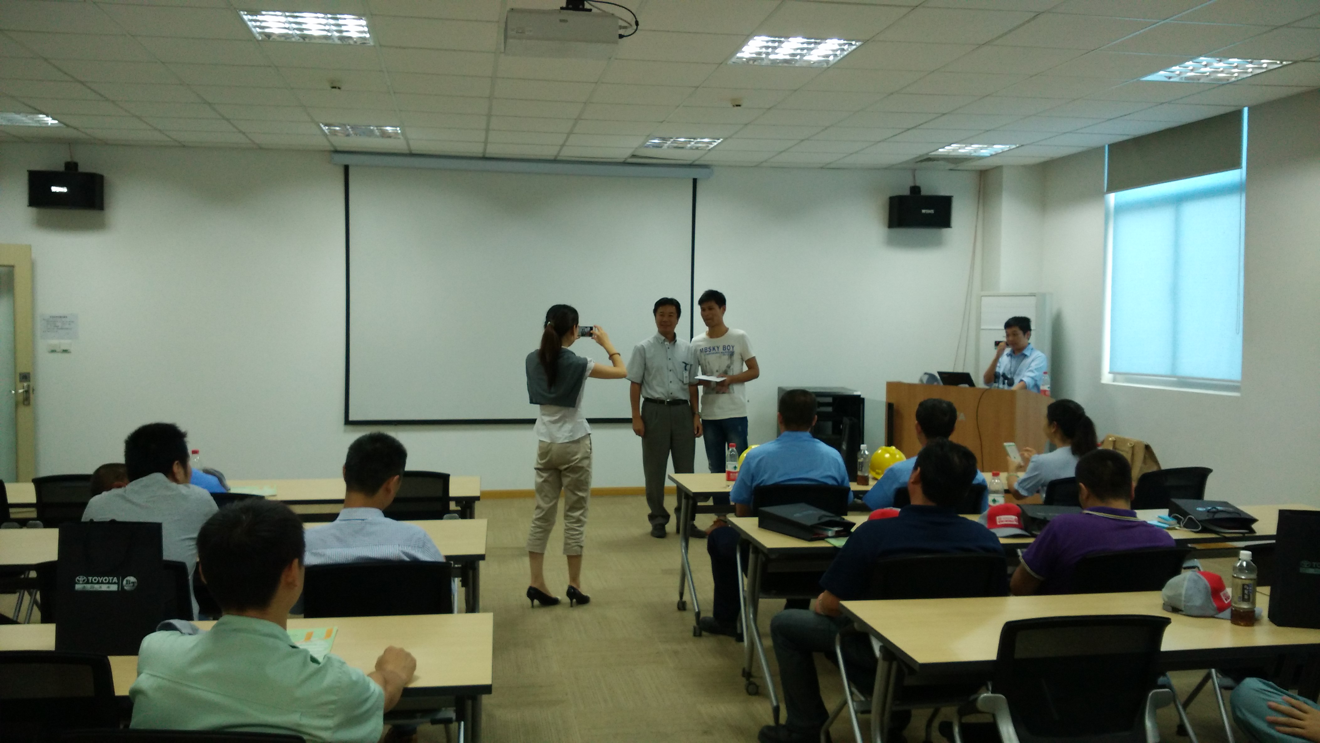 首先,來自豐田產業車輛售后部的技術人員為王子集團系統內的叉車駕駛人員進行叉車操作安全培訓講習。講師從安全培訓的目的開始,通過對豐田叉車性能的剖析以及事故類型分析,通過討論事故案例,制定再發防止對策,將事故發生的可能性降至最低。每日的車輛點檢,講師通過現場示范,讓駕駛人員規范了日常工作中的小細節,理解了定期點檢的重要意義。電瓶和充電器的講解,正確的方法可以延長電瓶的使用壽命,從而節約了企業成本。