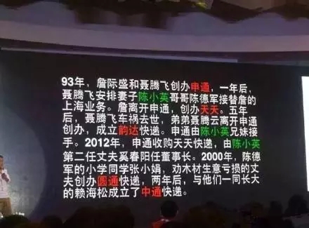 很多新晉物流人都以為申通、圓通、中通等快遞都是“水火不容”的競爭關系,看看下面這些圖片,才明白它們原來都是一家人開的,并且這一大家人成為了支撐中國電商發展的核心載體....你不服不行,馬云都離不開他們,還得掏錢投資他們!