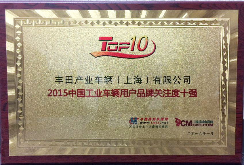 由中國(guó)工程機(jī)械網(wǎng)及工程機(jī)械電商網(wǎng)聯(lián)合推選的“2015中國(guó)工程機(jī)械用戶品牌關(guān)注度排行榜”近日公布,經(jīng)過(guò)客觀公正的評(píng)選,豐田叉車(chē)?yán)^去年第一屆評(píng)選之后再度榮膺“中國(guó)工業(yè)車(chē)輛用戶品牌關(guān)注度十強(qiáng)”。