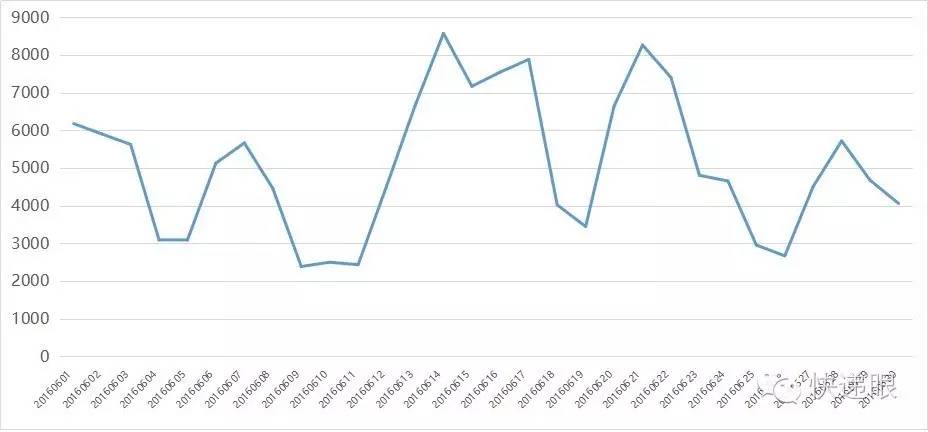 2016年6月份監(jiān)測期間,共計監(jiān)測范圍(門戶網(wǎng)站、主流紙媒、官網(wǎng)及微信公眾號)內(nèi)信息152730,信息量較上月環(huán)比下降2.56%;快遞企業(yè)競相融資,以及加碼投資是6月份的主旋律,百世、天天快遞、快捷、優(yōu)速都相繼獲得新一輪的融資。從日信息來看,6月17日主流媒體渠道的信息量最多為7885條,話題集中在快遞公司融資盤點(diǎn),以及資金流向。