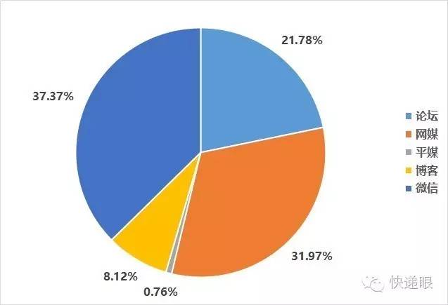 2016年6月份監(jiān)測期間,監(jiān)測信息的媒體分布平臺占比為,論壇21.78%,網(wǎng)媒31.97%,平媒0.76%,博客8.12%,微信37.37%。
