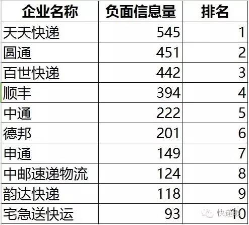 第一名天天快遞:負(fù)面輿情總量排名第一,負(fù)面輿情占其自身信息量比例排名第四,天天快遞和宅急送非法運(yùn)輸違禁品 紹興4名快遞小哥被刑拘被多次轉(zhuǎn)載,此外,負(fù)面輿情多涉及包裹延誤等信息。