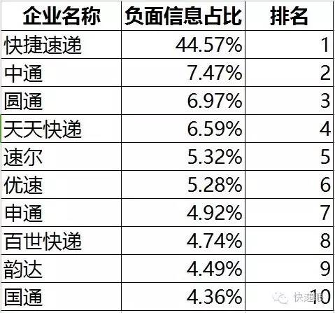第三名百世快遞:負(fù)面輿情總量為第三位,負(fù)面輿情總量占其自身輿情比例為第八位。負(fù)面消息涉及實名制落實不力,以及包裹延誤、服務(wù)態(tài)度等問題。