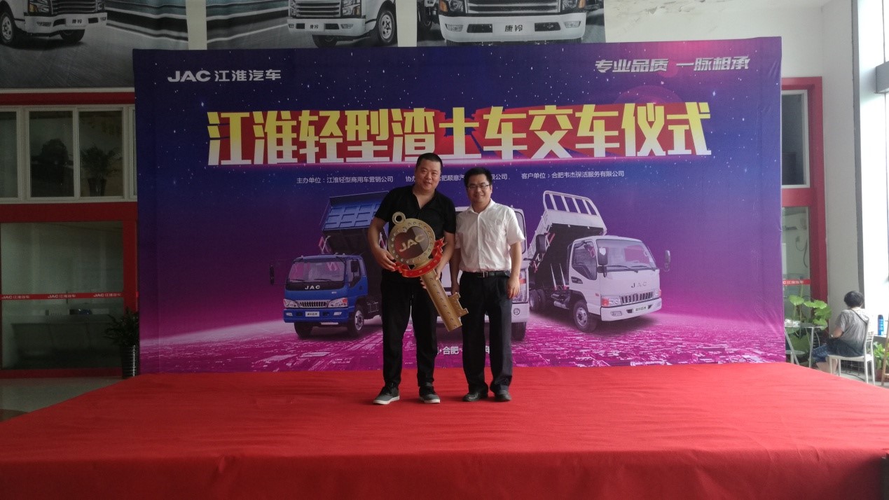 近日,江淮輕型商用車斬獲了43輛輕型渣土車大單。7月15日,首批17輛輕型渣土車正式交付合肥韋杰保潔服務(wù)有限公司,并在合肥舉行了盛大的交車儀式。江淮輕型商用車營(yíng)銷公司副總經(jīng)理宋華、工程車營(yíng)銷公司總經(jīng)理辛玉寶,合肥韋杰保潔服務(wù)有限公司總經(jīng)理王正香等領(lǐng)導(dǎo)共同見證了該儀式的成功舉辦。