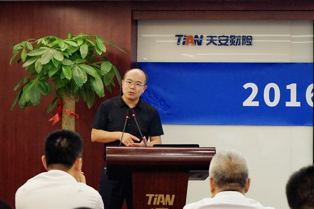 7月30日,中交興路副總裁李藝作為天安財險特邀嘉賓介紹中交興路及車旺保犇行動方案