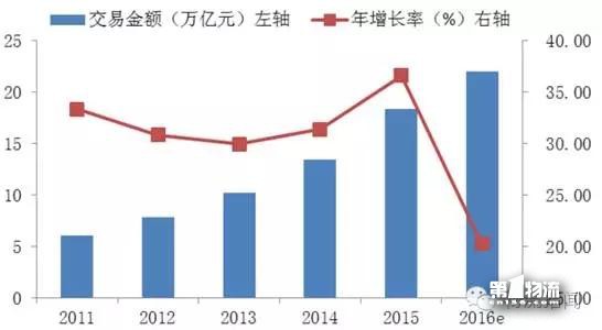2011年—2016年中國電子商務(wù)市場交易規(guī)模