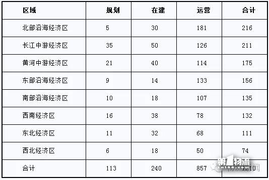 從各經(jīng)濟(jì)區(qū)域的實際狀態(tài)看,北部沿海經(jīng)濟(jì)區(qū)的物流園區(qū)數(shù)量在八大經(jīng)濟(jì)區(qū)中居于首位,黃河中游經(jīng)濟(jì)區(qū)的物流園區(qū)數(shù)量在近三年中迅速增加,排名第三,而長江中游經(jīng)濟(jì)區(qū)與黃河中游經(jīng)濟(jì)區(qū)在規(guī)劃、在建園區(qū)數(shù)量分別位居前兩位。如下表所示。我們認(rèn)為,絲綢之路經(jīng)濟(jì)帶和長江經(jīng)濟(jì)帶國家戰(zhàn)略的提出對兩個經(jīng)濟(jì)區(qū)域的物流園區(qū)規(guī)劃和建設(shè)起到了促進(jìn)作用。
