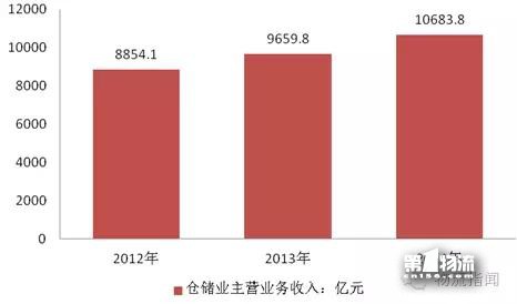 2012-2014年我國倉儲業(yè)主營業(yè)務(wù)收入:億元
