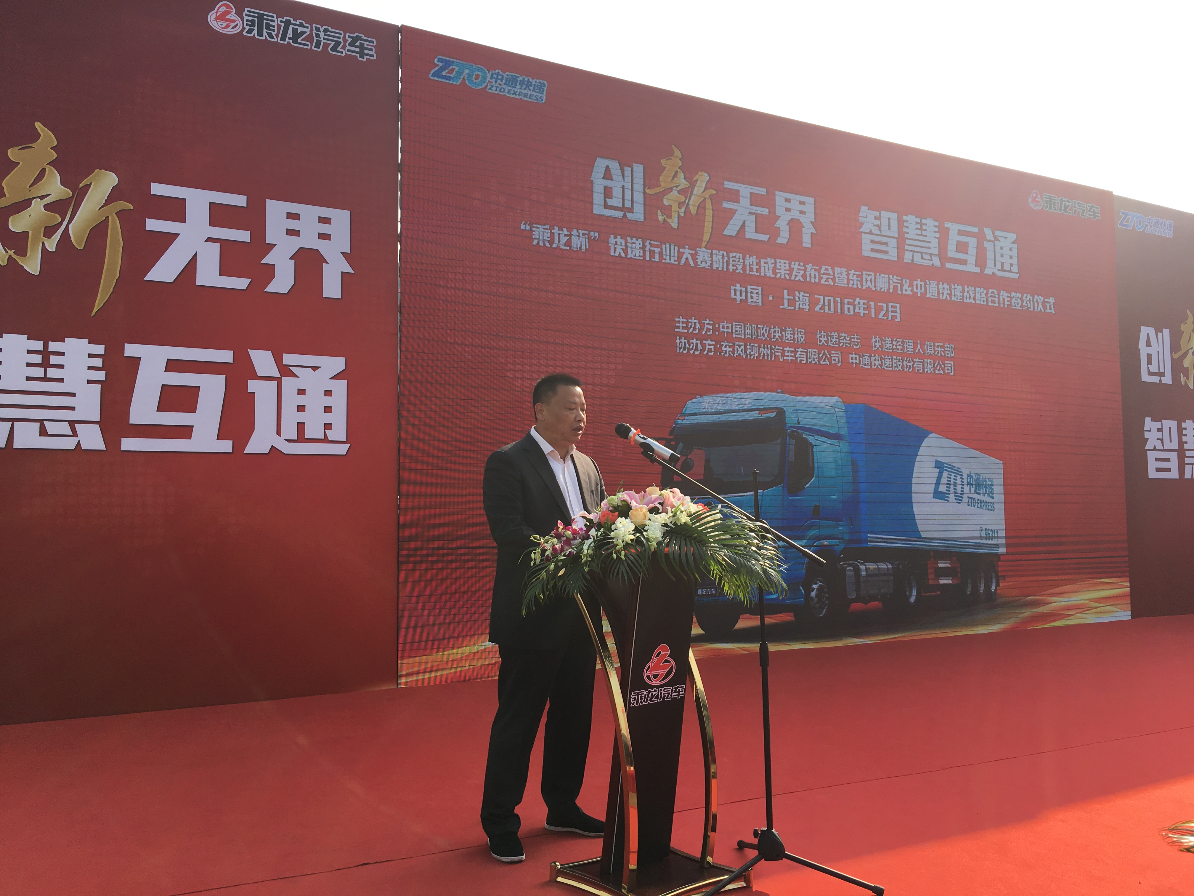 12月29日,“創新無界,智慧互通——‘乘龍杯’快遞行業大賽階段性成果發布會暨東風柳汽&中通快遞戰略合作簽約儀式”于中通快遞上海總部召開。中國郵政快遞報社副社長陰志華,中通快遞董事長賴梅松,東風柳汽副總經理姚利文等高層領導蒞臨現場,三方針對當下快遞物流行業的現狀和發展進行了全面探討,現場氣氛熱烈,盛況非凡。