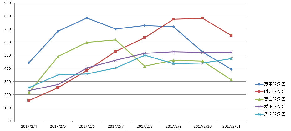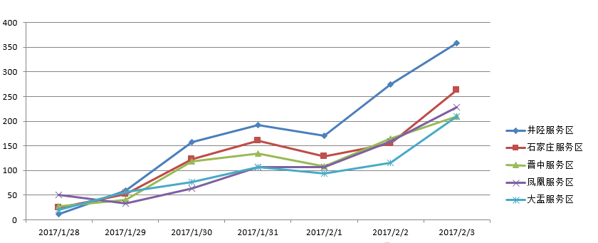 最后來關注春節期間重載貨車停靠數量TOP5服務區情況。正月初一至初七,重載貨車停靠數量TOP5服務區分別為:井陘服務區、石家莊服務區、晉中服務區、鳳凰服務區、大盂服務區;正月初八至十五,重載貨車停靠數量TOP5服務區分別為:萬家服務區、嵊州服務區、曹莊服務區、孝感服務區、鳳凰服務區。