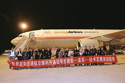 合作的第一個起點(diǎn),便是“昆明” 。1月18日,友和道通航空昆明至達(dá)卡定期貨運(yùn)航線正式開通。隨后,又于1月22日、27日,分別開通了昆明至孟買、昆明至德里兩條定期貨運(yùn)航線。三箭齊發(fā),實現(xiàn)“開門紅”,使得發(fā)展戰(zhàn)略相匹配,并且擁有明顯優(yōu)勢的友和道通航空和云南機(jī)場集團(tuán)的合作邁出了實質(zhì)性的一步。