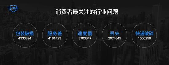 消費者最關注的快遞五大問題依次是快遞包裝破損、服務差、速度慢、快遞丟失和快遞破碎。