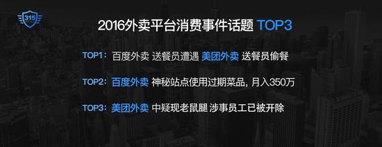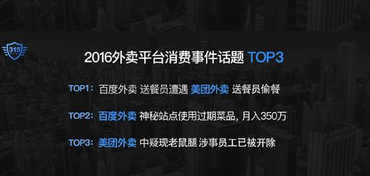 而2016年討論最多的三大話題內更是集中于百度外賣和美團外賣兩家。分別是百度外賣送餐員遭遇美團外賣送餐員偷餐;百度外賣神秘站點使用過期菜品,月入350萬;美團外賣中疑現老鼠腿。