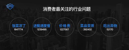 消費者最關注的外賣五大問題依次是飯菜涼了、送餐速度慢、價格貴、菜品變質、吃出異物。
