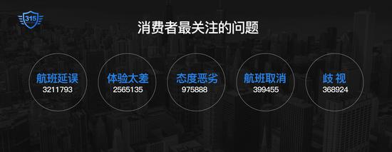航班延誤、體驗太差、態(tài)度惡劣、航班取消、歧視成為微博消費者在航空領域最關注的問題。