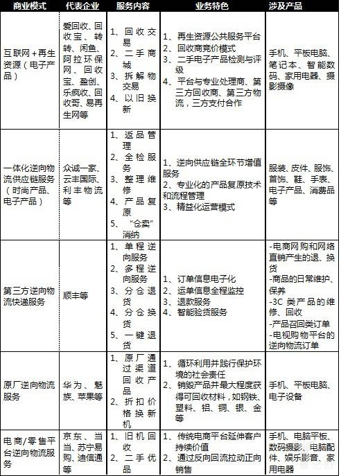 從目前國內逆向物流整體商業生態來看,大體可以歸納為5種商業模式,見表1。