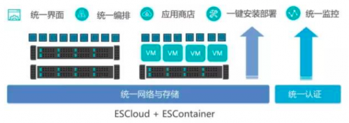 ESContainer 面向企業(yè)級(jí)容器化應(yīng)用的管理和編排場(chǎng)景,產(chǎn)品提供包括自動(dòng)化部署、強(qiáng)化的管理界面、應(yīng)用商店,多級(jí)監(jiān)控、支持虛擬機(jī)、可視化編排、物理機(jī)資源池的混合部署,并且與EasyStack的企業(yè)級(jí) OpenStack 平臺(tái) ESCloud 深度整合融合,無(wú)縫的可視化使用 ESCloudIaaS 提供的計(jì)算、網(wǎng)絡(luò)和存儲(chǔ)資源以及豐富的軟件基礎(chǔ)設(shè)施,為云計(jì)算數(shù)據(jù)中心從以資源為中心到以應(yīng)用為中心打通了最后一公里。