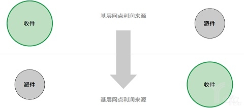 快遞是網絡型組織,“三通一達”最開始組建網絡的時候,派件都是免費的。后來隨著地區間業務的不均衡性加大,有償派費開始推行。派費設計的初衷是為了保障派件網點的基本開銷,網點要想賺錢,最終還是要靠收件。但快遞發展至今,越來越多的網點淪為派件網點,即派件量明顯大于收件量。