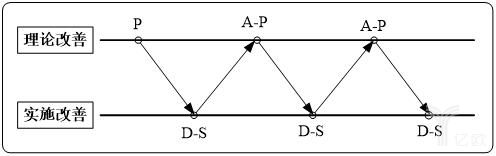 推行改善的時候,管理者首先會在理論上認為可以推行改善。理論的改善包括改善計劃,以及為改善活動所做的資源部署。然后,通過實施改善來驗證理論改善,并對產生的新問題、新發現進行研究。如圖13-1所示,理論改善主要由Plan(計劃)和Act(行動)這兩個步驟組成;而實施改善則是由Do(執行)-study(研究)這兩個步驟組成;這兩方面組成了推行改善的“PDSA程序”。