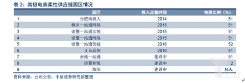 其三是電商產業園版塊,更準確一點叫“柔性供應鏈電子商務園區”,主要整合供應商與經銷商,打造以銷定產的柔性供銷鏈,這是南極電商未來價值所在。