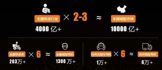 城配過去在大家腦海里面可能是一個比較邊緣化的,路邊攤。我覺得它其實是一個非常大的行業。跟快遞行業相比,快遞去年是4200億,12年還是1000億,增速很快,但是城配有1萬億,整整是它的2.5倍;人員,中國有1300萬的城配司機,但是中國的快遞從業人員只有203萬;出租車司機,舉個例子,杭州有1萬多的出租車司機,但同城貨車司機有6萬,基本上你會發現每一個城市無論大小城配貨車司機都比出租車司機高2倍到5倍之間不等。